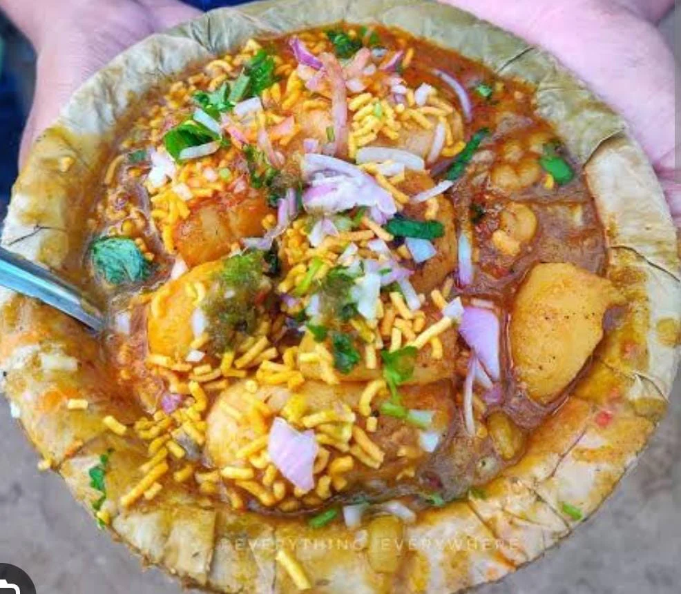 Some vendors also add fried chickpeas (bara chana) or peas for extra texture.